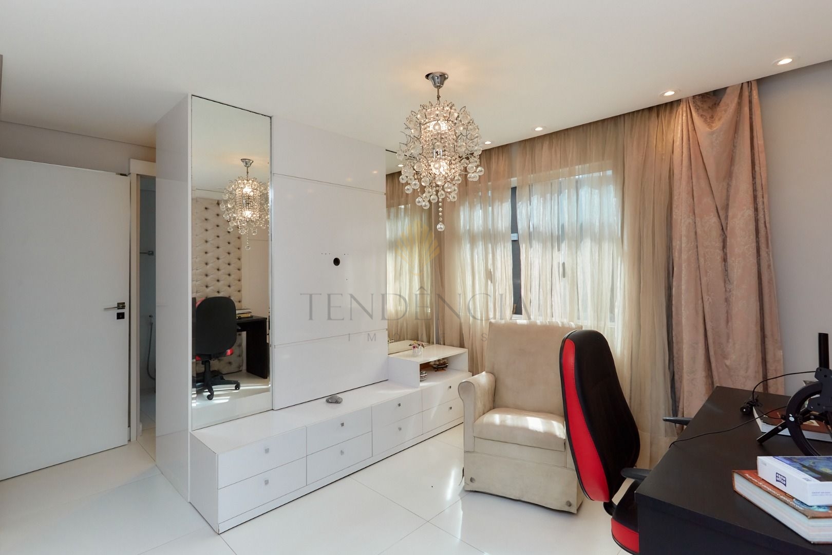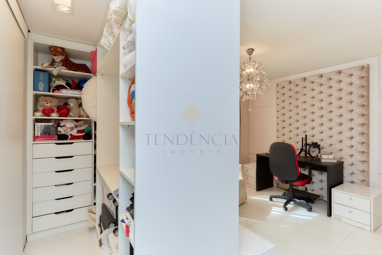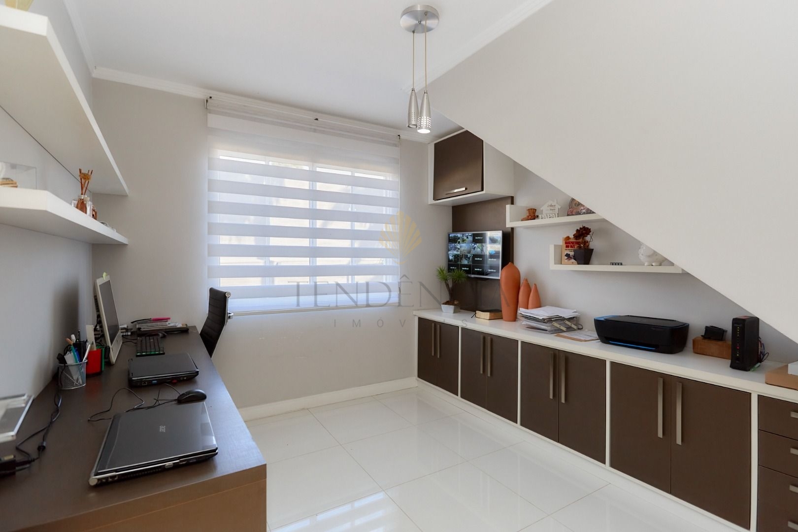 A residência conta com 5 quartos, sendo 2 suítes - uma delas com amplo closet -, lavabo, home office,