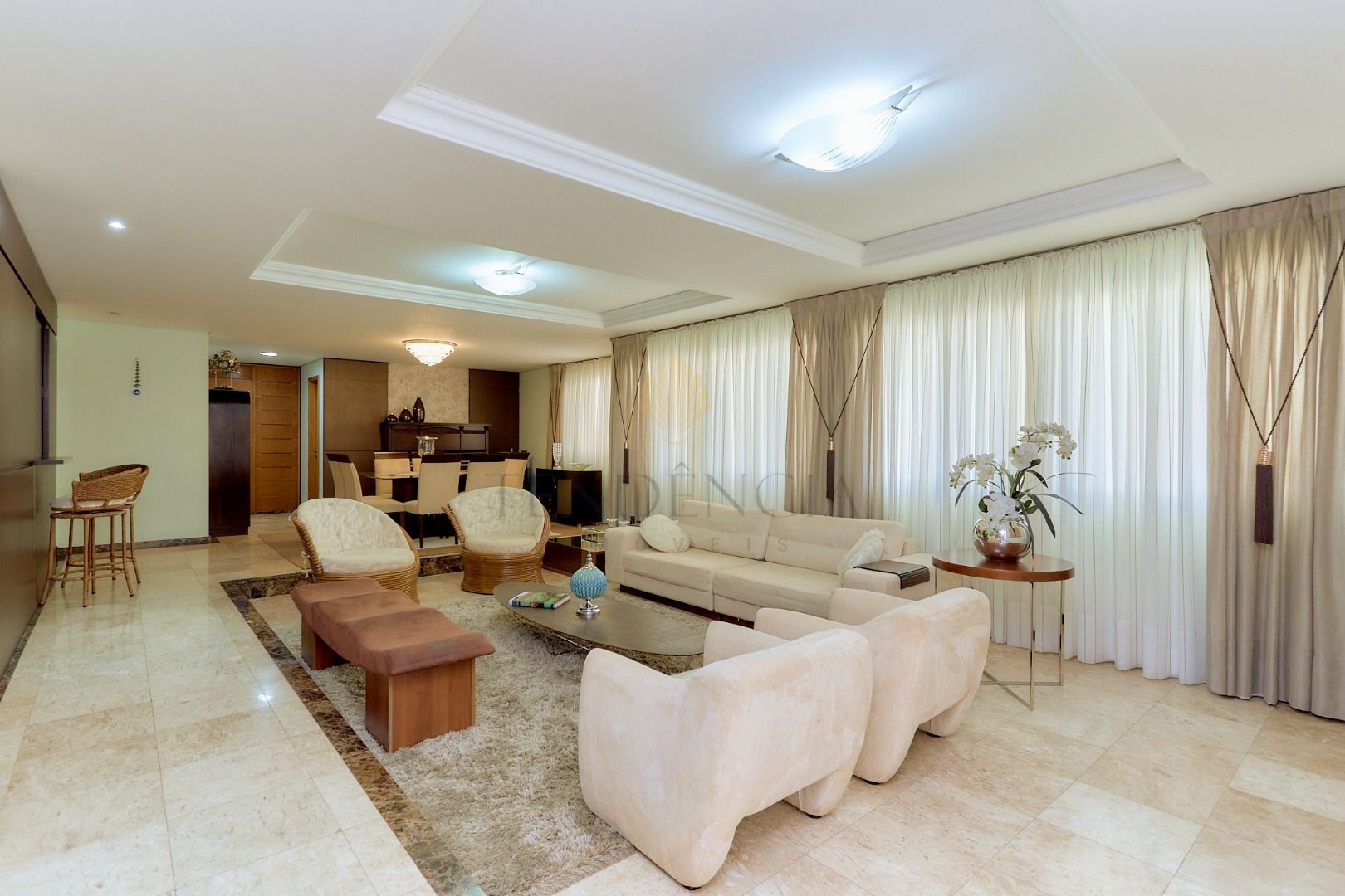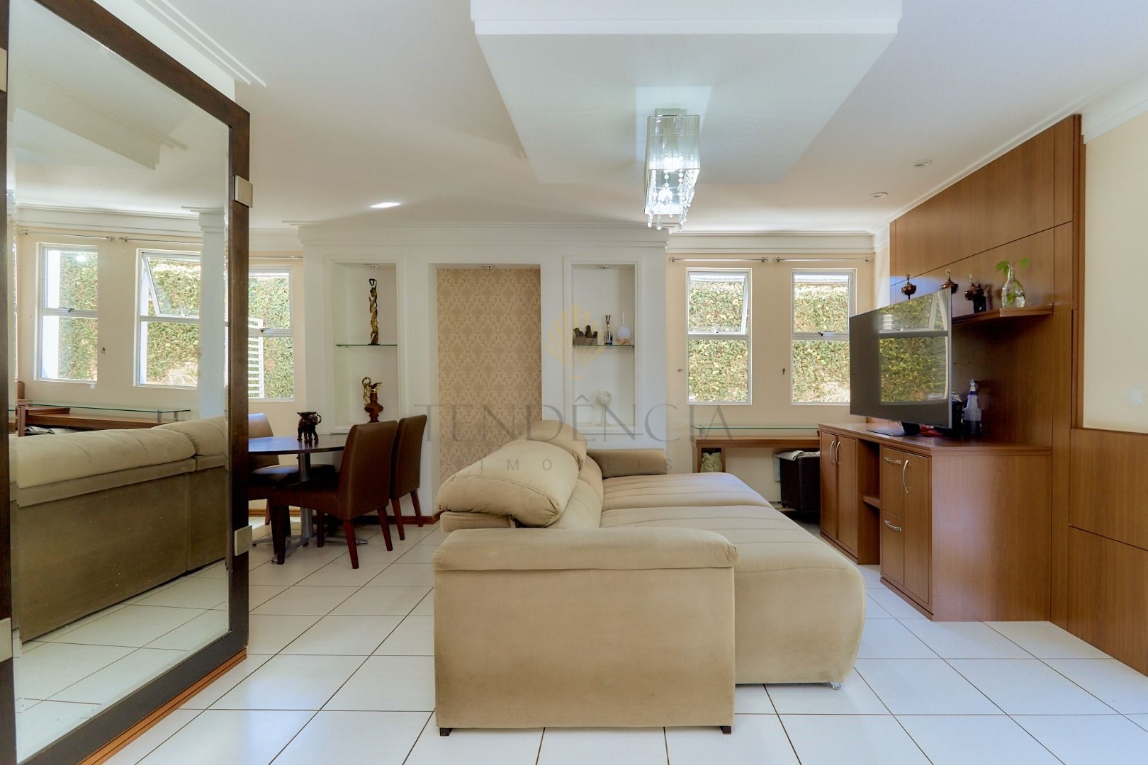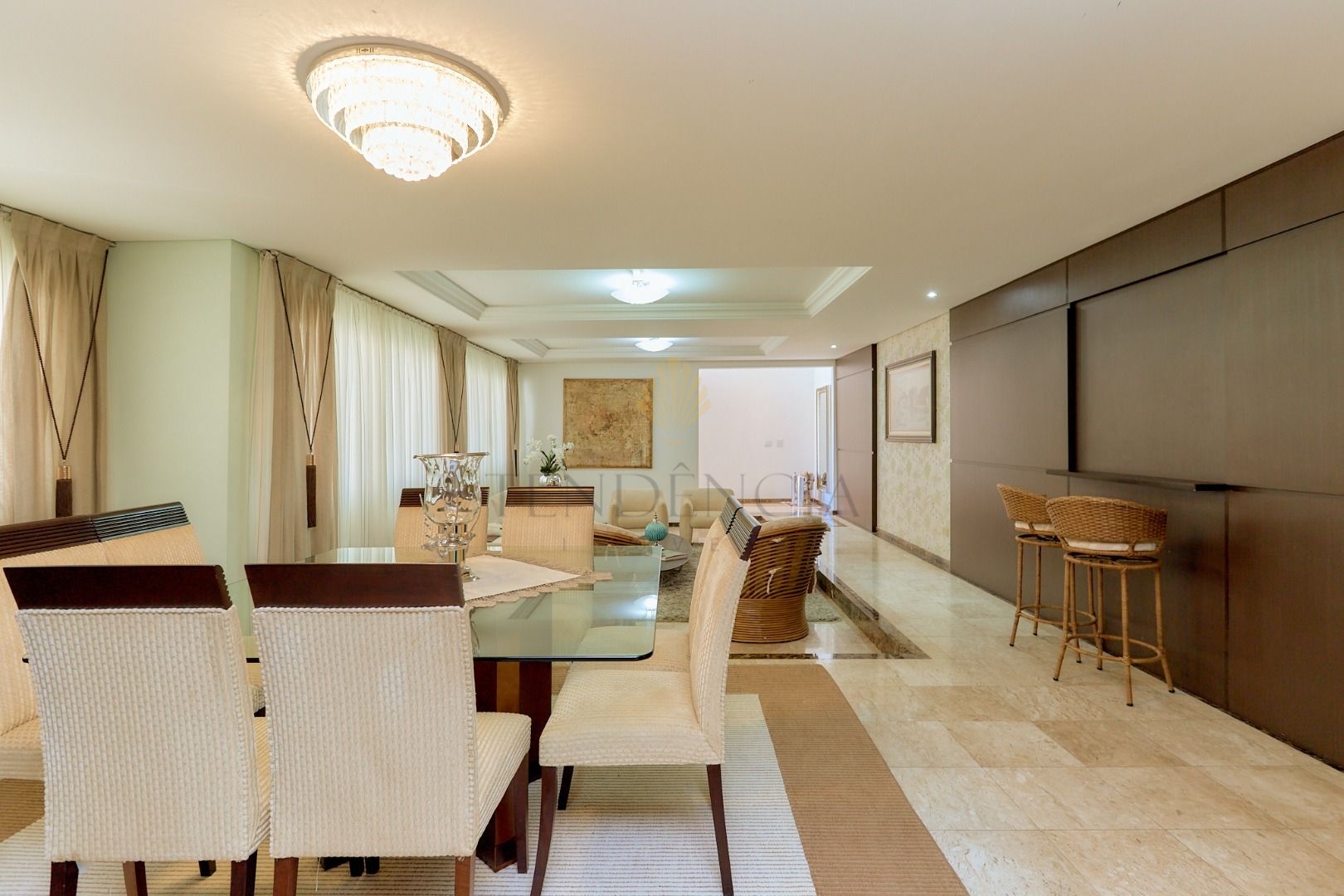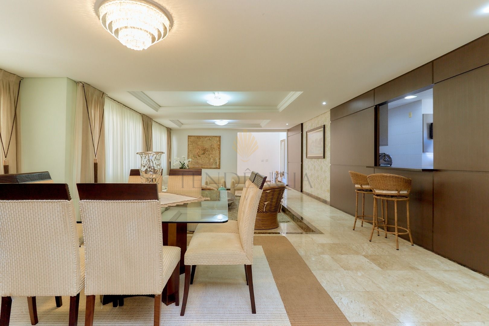 Assim que entramos temos uma agradável sensação de bem-estar e aconchego, pois temos salas de estar e jantar amplas e integradas.