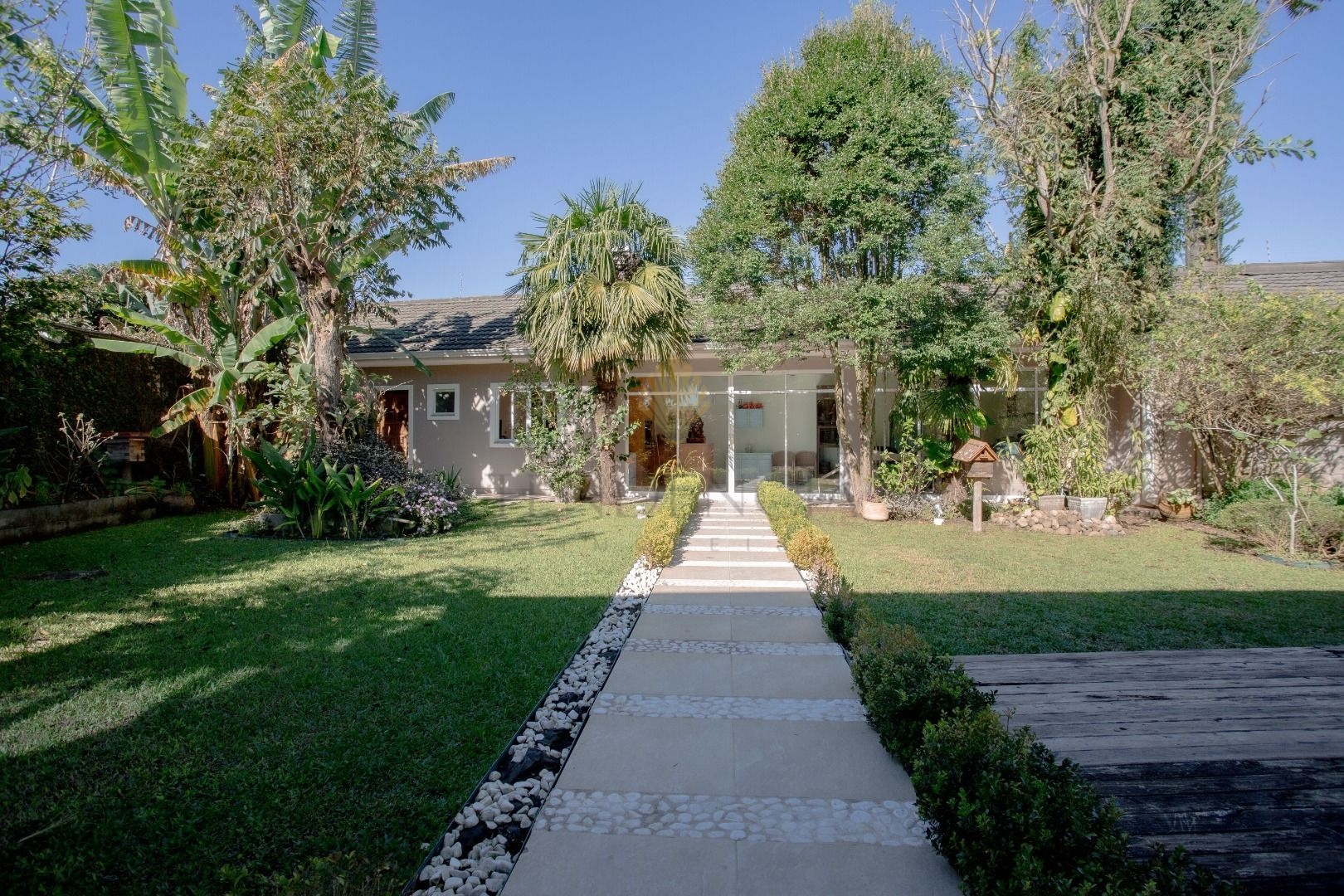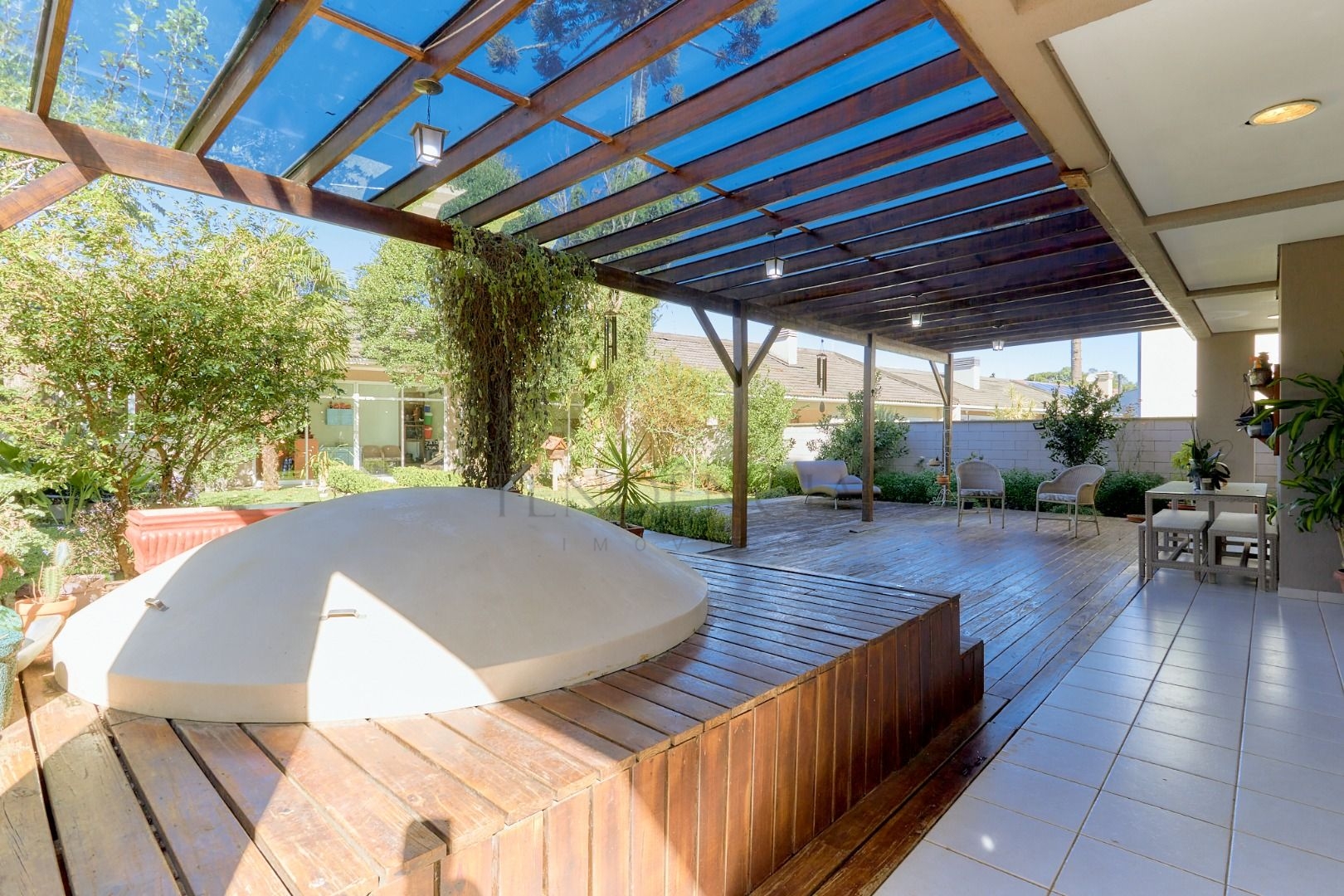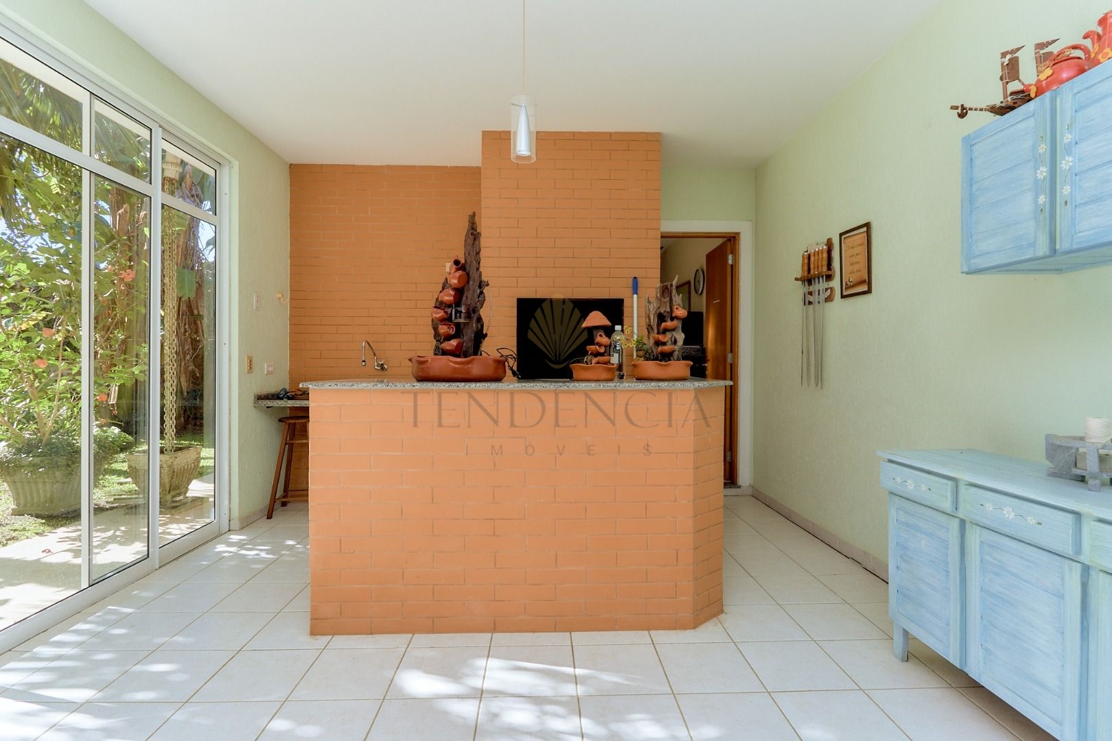 Em um espaço mais reservado encontramos uma biblioteca e uma sala de tv que dão acesso ao deck e um grande e agradável jardim. Aos fundos desse jardim, temos um espaço com churrasqueira, banheiro e mais 2 cômodos que podem ser transformados em uma Maravilhosa Área Gourmet.