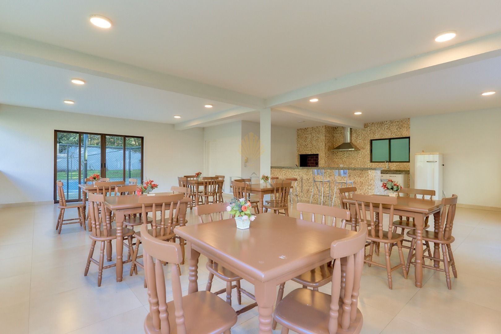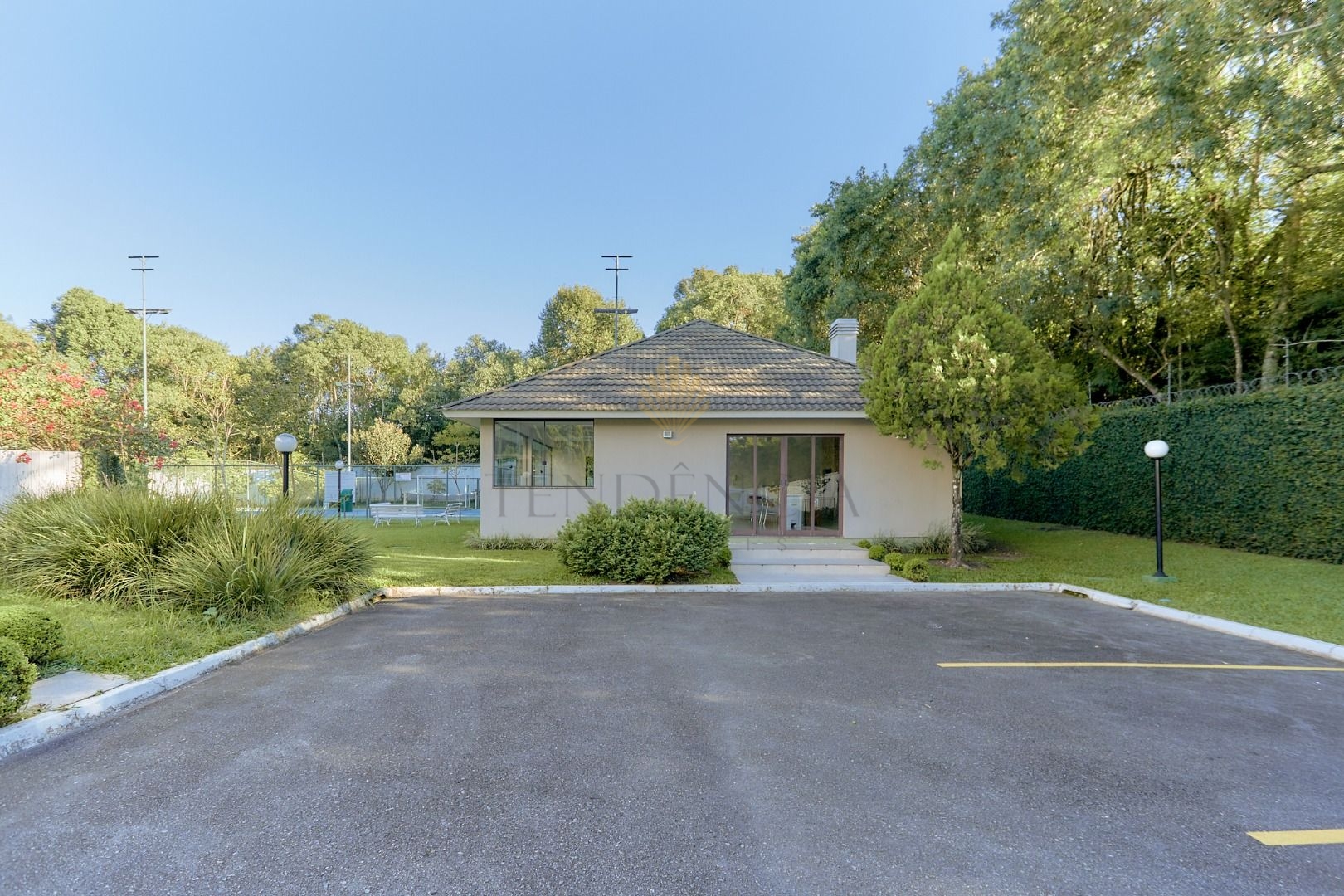 O condomínio bastante privativo com apenas 20 casas, monitoramento, vigilância, portaria 24 horas. Possui salão de festas, quadra poliesportiva e playground, além de um bosque particular.