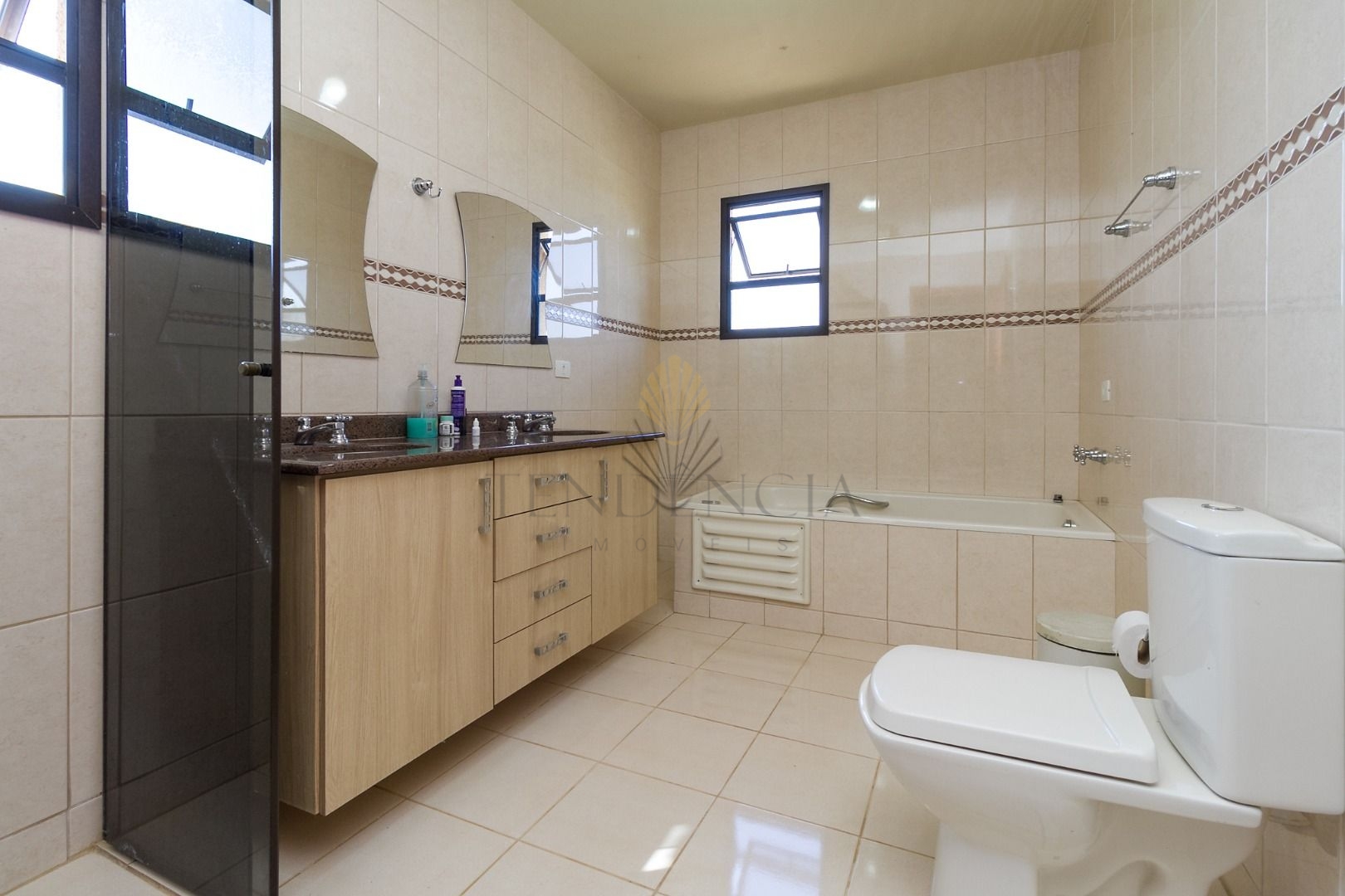 A casa possui 297 m² de área construída e conta com: