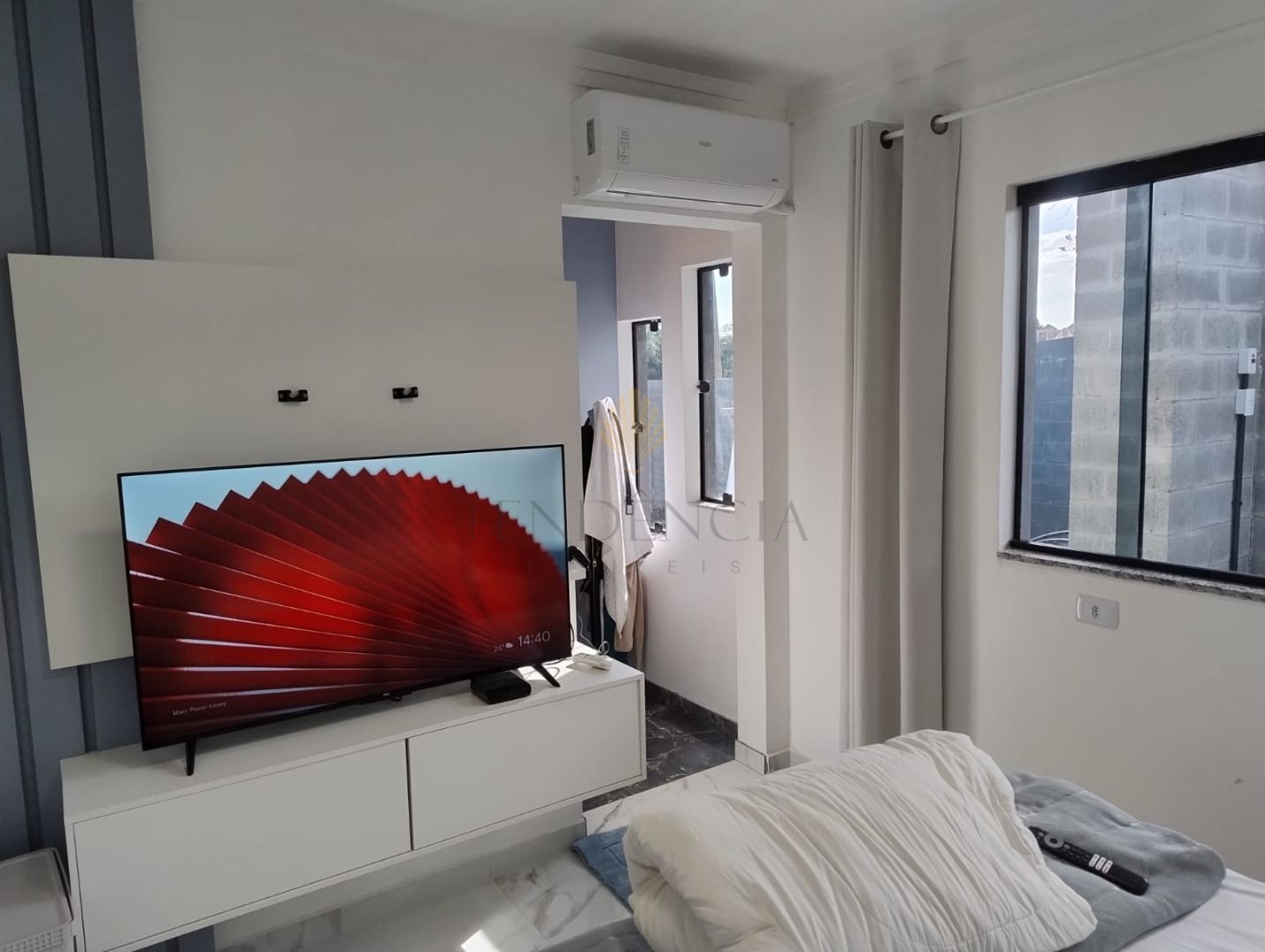Possui uma residência de 100m², 2 quartos sendo uma suíte com closet, sala de estar, cozinha, banheiro social e área de serviço.