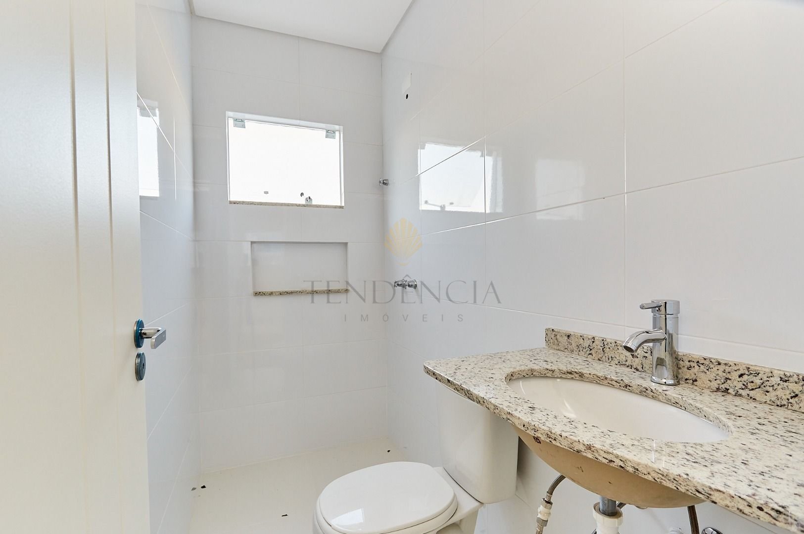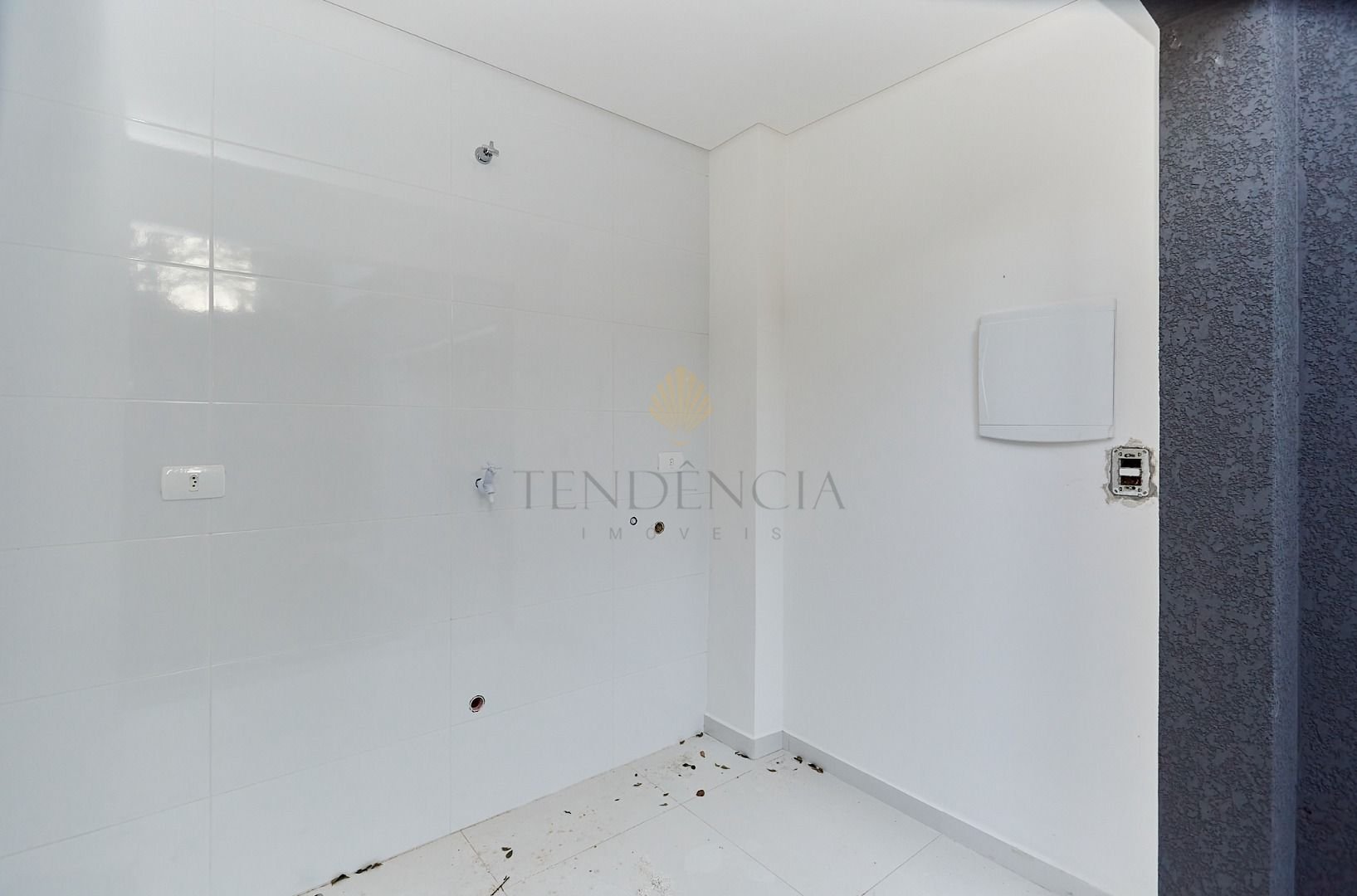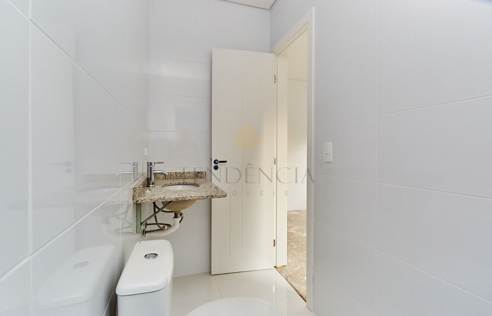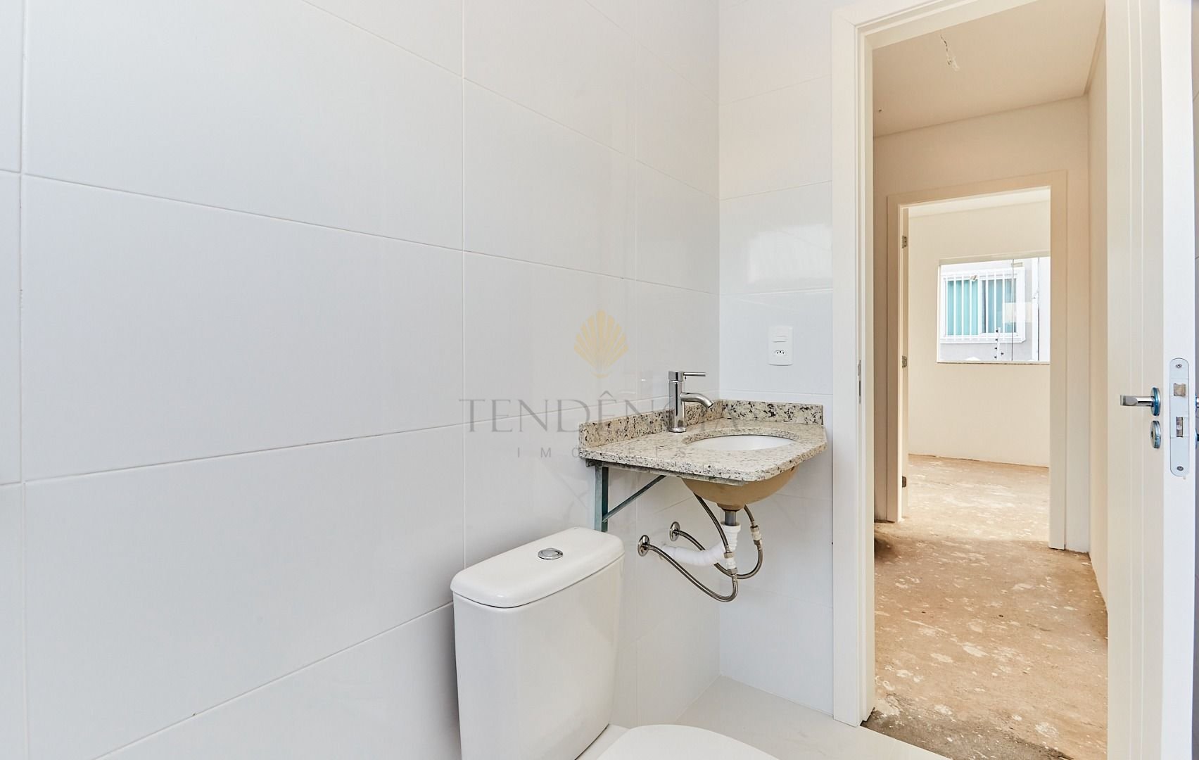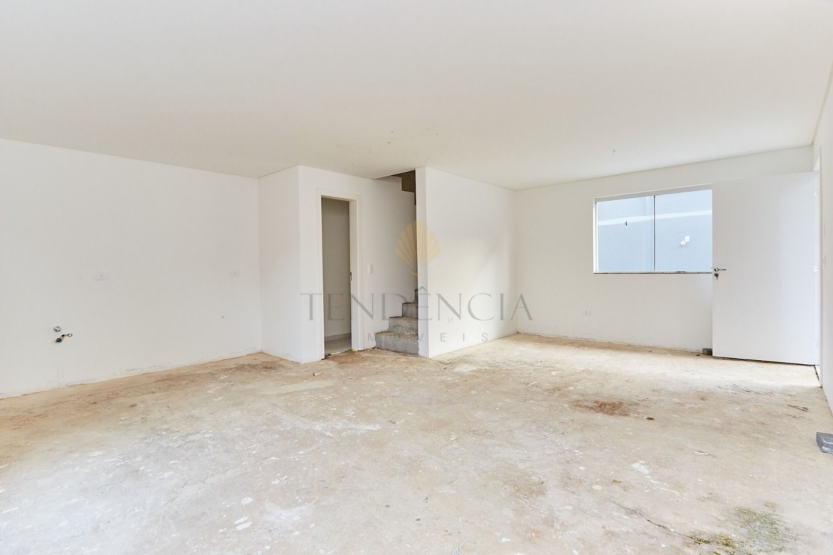 Piso Térreo 47,30 m²: lavabo, sala ampla, cozinha, na parte externa um belo espaço de jardim, e lavanderia coberta.